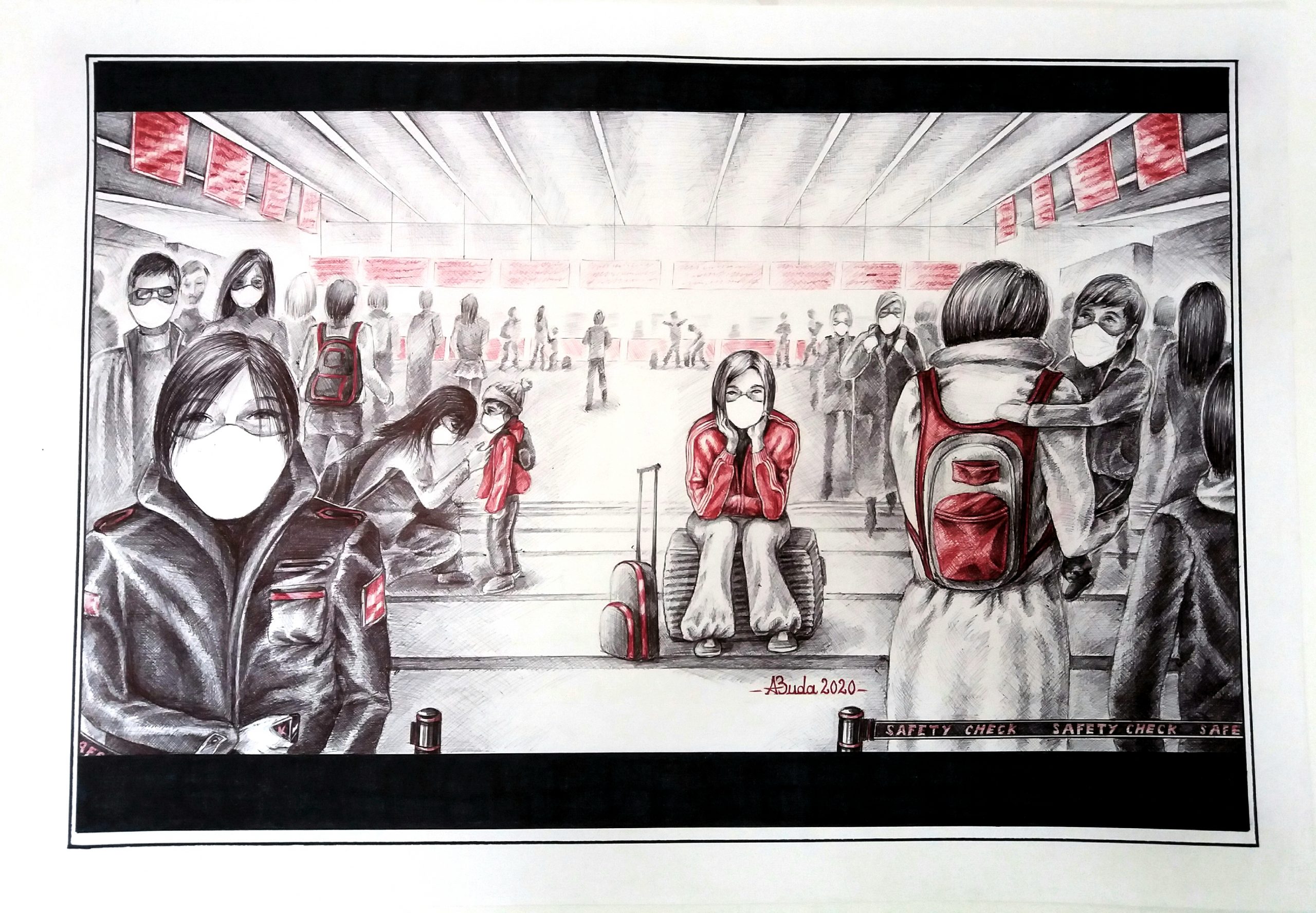“Worries” Compoziţie A1 (84×59 cm), pixuri colorate: negru și roșu; permanent marker negru “Worries” Compoziţie A1 (84×59 cm), pixuri colorate: negru și roșu; permanent marker negru